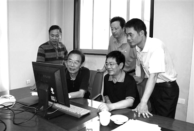 李兆雄(右一)在与同事研究讨论有关案情