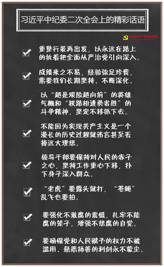 原文:“老虎”要露头就打,“苍蝇”乱飞也要拍。要推动全面从严治党向基层延伸,严厉整治发生在群众身边的腐败问题。要把扫黑除恶同反腐败结合起来,既抓涉黑组织,也抓后面的“?;ど ?。