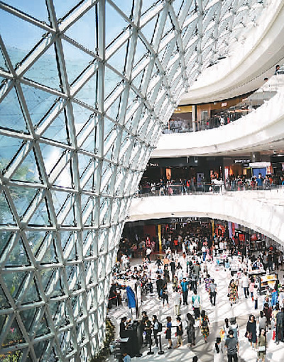 顾客在海南三亚海棠湾免税店内游览、购物。