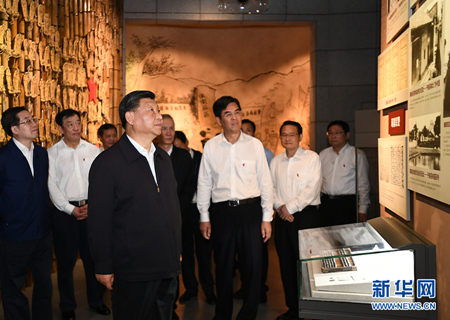 8月19日至22日,中共中央总书记、国家主席、中央军委主席习近平在甘肃考察。这是20日上午,习近平在张掖市高台县参观中国工农红军西路军纪念馆。 新华社记者 鞠鹏 摄