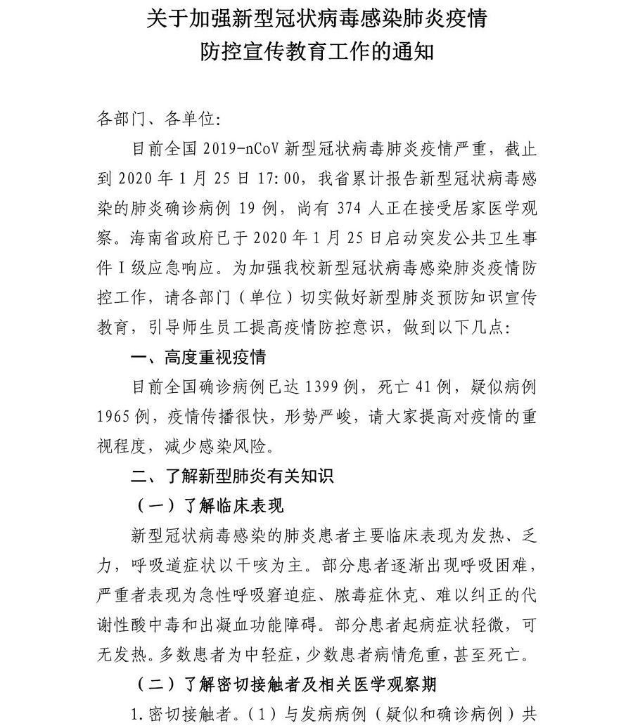 关于加强新型冠状病毒感染肺炎疫情 防控宣传教育工作的通知