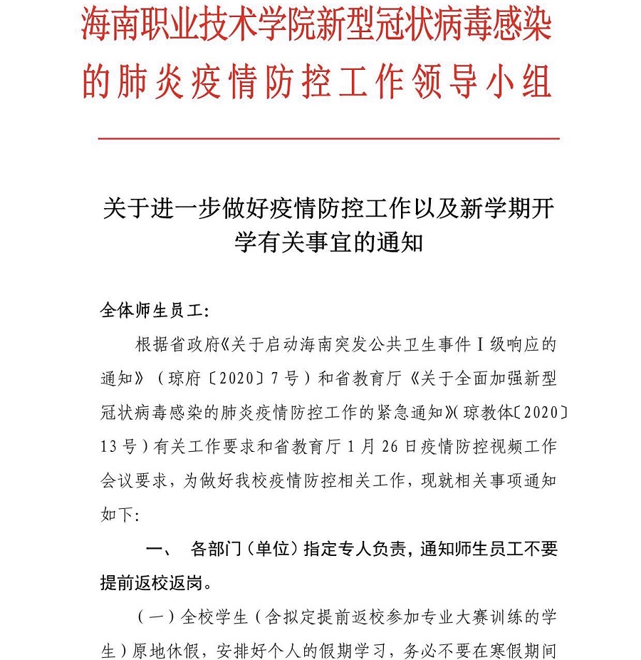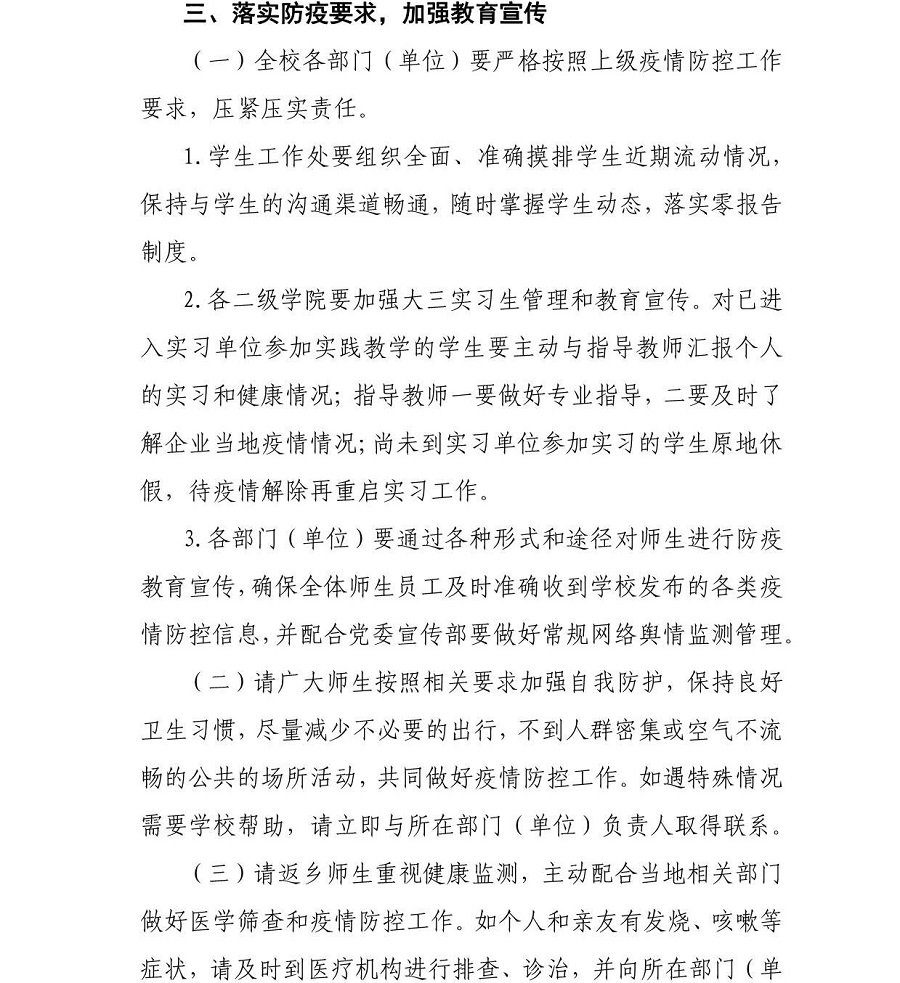 关于进一步做好疫情防控工作以及新学期开学有关事宜的通知
