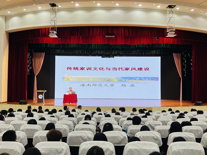 杨威教授从“家训文化是中国传统文化的重要组成部分”“传统家训文化的内容和家风培育的途径方法”“弘扬优秀家训文化促进当代家风建设”等三个方面为师生们进行解读。他指出,家庭是社会的基本细胞,是人生的第一所学校。虽然时代发生了根本的变化,但齐家教子、修身处世、培育优良家风仍是每个人的必修课,建设优秀家文化关系到中华民族复兴大业和整个文化建设的大局。