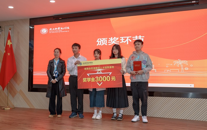 (海南职业技术学院代校长黄银珍为优秀学员颁发奖学金  经济管理学院供图)