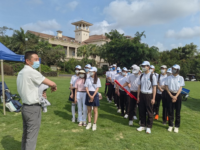 活动中,同学们认真聆听了观澜湖集团的相关产业及历史,并先后对营销场所、练习场、标准球场等专业经营场所进行参观,了解高尔夫球场的整体规划布局与运营流程,以及高尔夫赛事运作、项目市场发展,并在练习场分批体验练习高尔夫的技术动作。