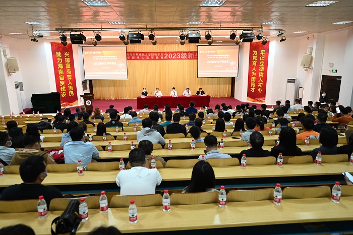 3月18日上午,海南大学成人高等教育海南职业技术学院教学点、海南职业技术学院成人高等教育2023级新生开学典礼在学术报告厅隆重举行。海南职业技术学院校长助理沈振国、海南大学继续教育学院副院长郭祯、海南职业技术学院继续教育学院常务副院长黄炜出席典礼。