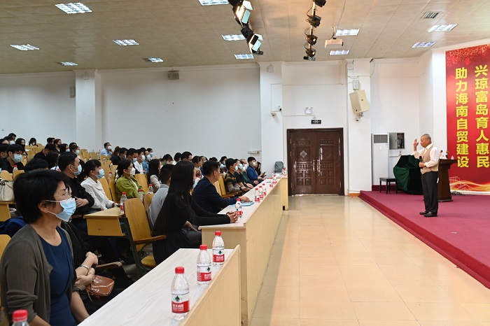 典礼结束后,海南职业技术学院马克思主义学院教授汤孝锦为全体同学做开学第一讲——《踔厉奋发,逐梦伟大征途》。