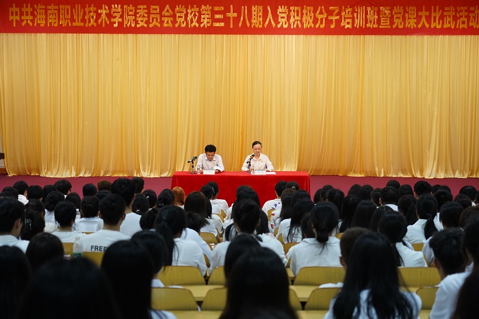 4月3日晚,海职院党校第三十八期入党积极分子培训班暨党课大比武活动开班典礼在学术报告厅举行。学校党委书记王承庆出席开班仪式并宣讲全国两会精神。