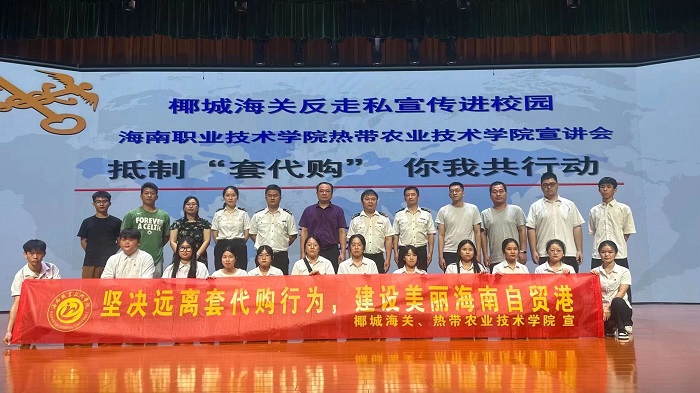 为继续推动校园安全教育深入开展,警醒及防范学生参与离岛免税品套代购行为,加深学生对离岛免税套代购行为的本质认识。4月23日,热带农业技术学院在大礼堂举行“抵制‘套代购’·你我共行动”安全教育主题讲座。特邀请椰城海关免税品监管科科长曹阳主讲《椰城海关反走私宣传进校园宣讲》的专题讲座。椰城海关副关长林光、椰城海关办公室主任杨宜金和学院党总支书记郑冠波出席讲座。