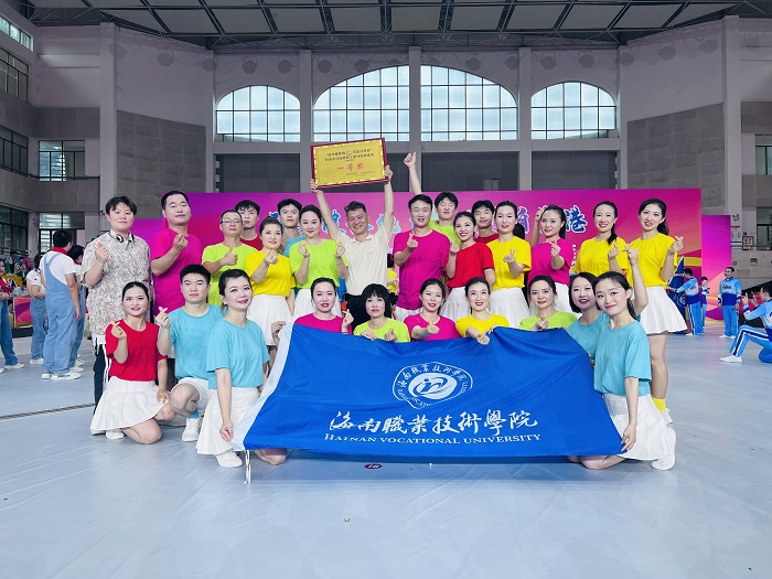 5月12日,由海南省教育厅、海南省教育工会主办的海南省首届教职工健身操舞比赛在琼海市举行。经过激烈角逐,我校教职工健身操舞代表队表演的《feel倍爽》在高校组19个队伍中脱颖而出,以精彩的表现荣获高校组一等奖。