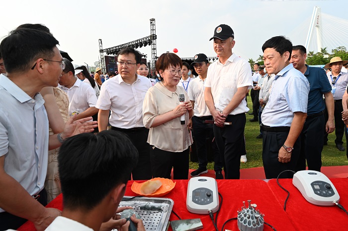 5月18日,由海南省教育厅主办的2023年海南省职业教育活动周启动仪式在海口云洞图书馆举行。我校选派了珠宝、非遗藤竹编技艺、电商直播3个项目参加展位展示以及古筝重奏参加舞台展示表演。海南省政府副秘书长张华伟、省教育厅厅长李湖、副厅长范绪锋等领导来到学校展位,认真听取了学校办学特色与优势汇报。我校的展位吸引不少参展者驻足围观,不时向师生询问珠宝雕刻、鉴定和藤竹编手工编制的技艺,参展师生耐心细致地进行了解答。参展人员对学校的办学特色和作品展示给予了高度评价,一致认为这些作品展示具有创新性和实用性。同日,我校还参与了江东新区校企合作签约活动。