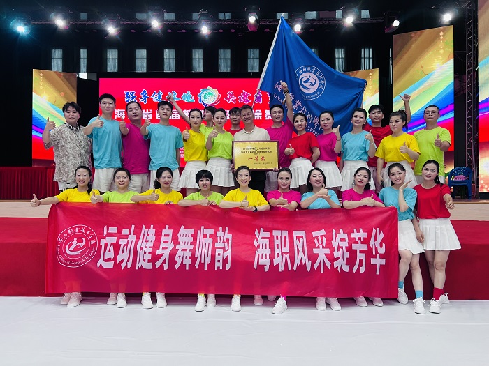5月12日,由海南省教育厅、海南省教育工会主办的海南省首届教职工健身操舞比赛在琼海市举行。经过激烈角逐,我校教职工健身操舞代表队表演的《feel倍爽》在高校组19个队伍中脱颖而出,以精彩的表现荣获高校组一等奖。