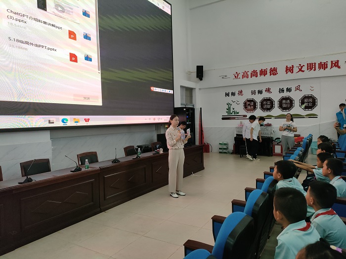 走出去——海南职业技术学院以技能下基层、进社区为抓手,充分展示和宣传职业教育成果。5月18日,我??萍贾驹刚咄哦痈傲俑呦夭┪难?箍破招不疃R?ldquo;扎实推进主题教育,科技助力乡村振兴”为主题,科技志愿者宣讲老师,通过图文和视频演示,以“新能源与我们的生活”“人工智能最前沿”为课题,分别为同学们进行授课,受到临高县广播电视台和海南新闻联播的报道。