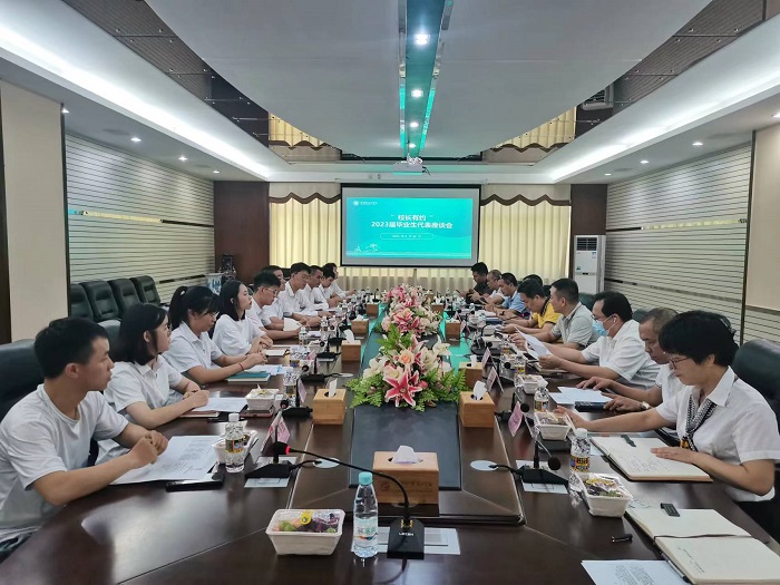 6月20日上午,“校长有约”2023届毕业生代表座谈会在我校图书馆南山厅举行,10名毕业生代表参加本次座谈会。学校党委委员、副校长符兴干出席座谈会,学生工作处副处长吴多清主持。