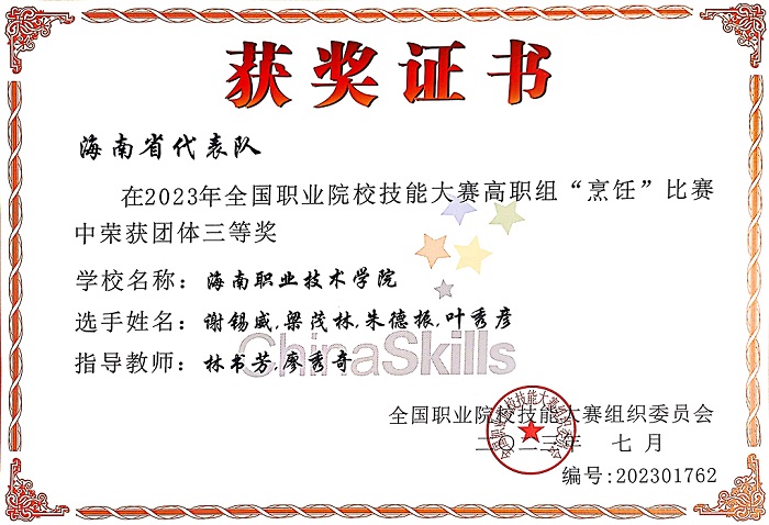 我校学子喜获2023年全国职业院校技能大赛高职组烹饪赛项三等奖