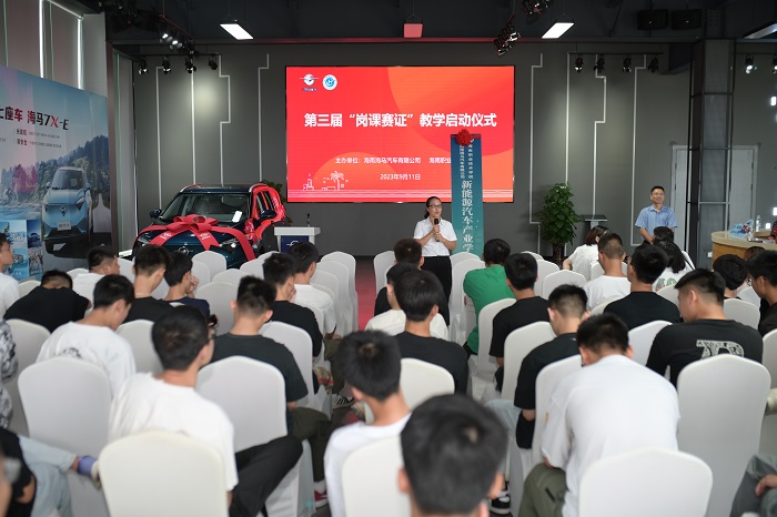 据悉,为贯彻落实中共中央办公厅和国务院办公厅印发的《关于推动现代职业教育高质量发展的意见》有关要求,我校新能源汽车专业群与海南海马汽车有限公司开展深度校企合作产教融合,共建新能源汽车产业学院,特别是自2022年起至今已连续开展两届“岗课赛证”教学改革试点工作。今年9月11日,我校又与海南海马汽车有限公司共建“新能源汽车产业学院”。