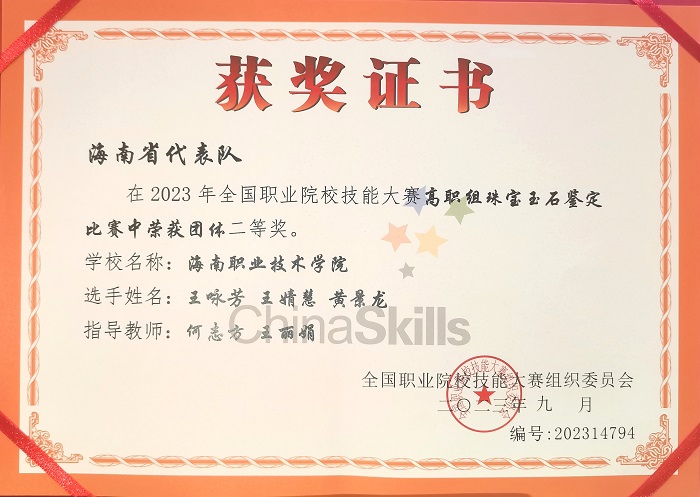 海南职业技术学院喜获2023年全国职业院校技能大赛“珠宝玉石鉴定”赛项二等奖