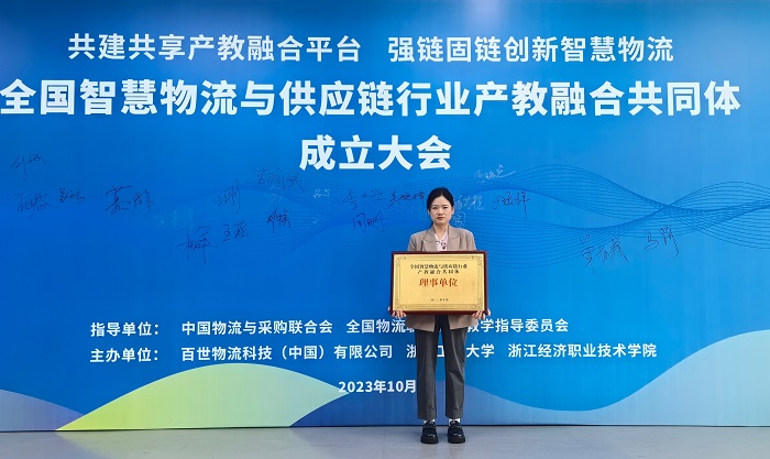 10月25日,全国智慧物流与供应链行业产教融合共同体成立大会在浙江召开,我校担任理事单位。