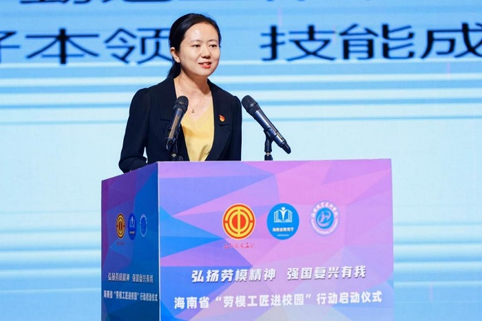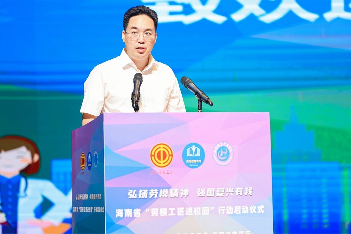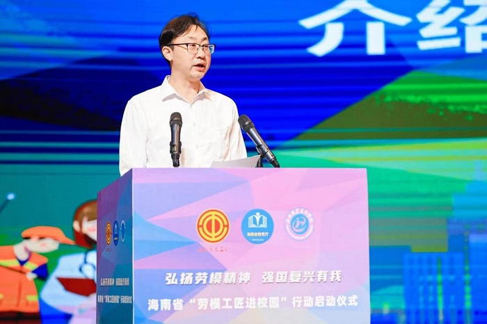 海南省总工会党组成员、副主席陈波做活动介绍 (海南省总工会供图)