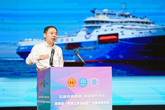 启动仪式后,2022年全国五一劳动奖章获得者、最美职工、中海石油(中国)有限公司海南分公司总工程师、教授级高级工程师刘书杰同志分享了他耕耘石油天然气钻完井技术领域,带领团队在海洋油气勘探开发一线,一次又一次从技术困境中突围,推动中国海洋油气钻完井技术跨越式发展。鼓励青年学子保持好奇,持续学习,用知识和行动来改变命运。