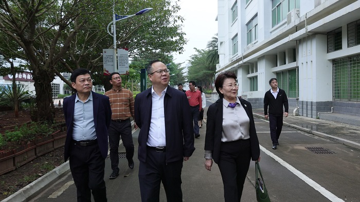 翁波副司长一行围绕教师队伍建设和教师创新团队建设,详细了解了学校教师队伍建设情况和高层次人才引培机制,参观了电商直播实训中心、非遗项目的黎锦和椰雕精品展示馆、装配式建筑实训基地、新能源(高压电)实训基地、畜牧兽医实训中心和珠宝实训室等校内实训基地,还专程前往学校校外实训基地罗牛山产业园调研产教融合情况。