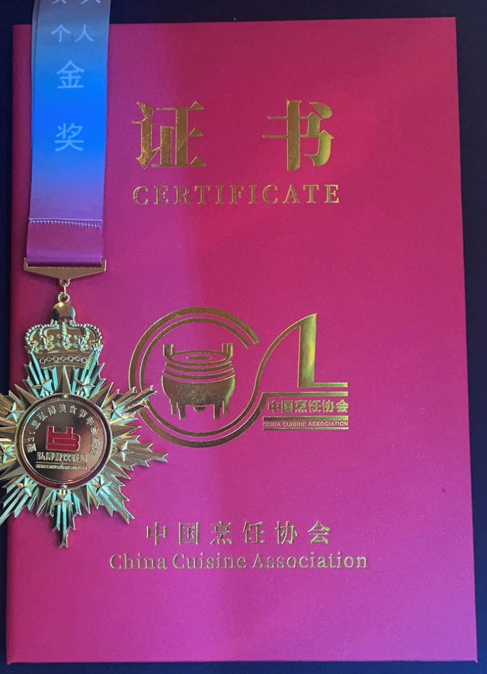 廖秀奇老师荣获热菜项目金奖(旅游学院供图)