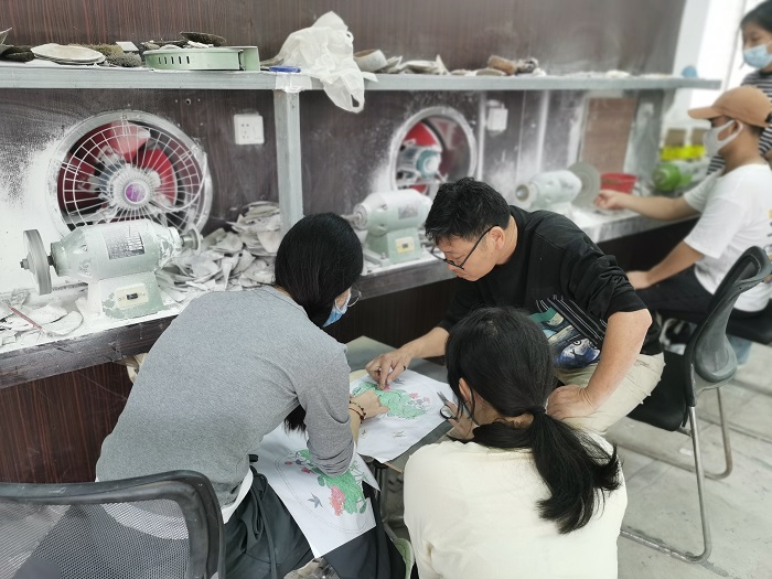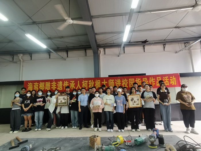 由??谑辛梦木智M?,龙华区文化馆和海南职业技术学院共同建立的“海南椰雕实训基地”是海南非遗传承保护和人才培养深度融合发展的创新平台。近年来,我校旅游学院以省“双高”建设为契机,融合专业群内旅游管理、珠宝首饰技术与管理专业开设的《旅游商品设计与营销》课程采用“馆、校、协、企”四方联动方式进行教学改革,探索出将专业课程与海南椰雕非遗传承项目融合的全新发展模式。