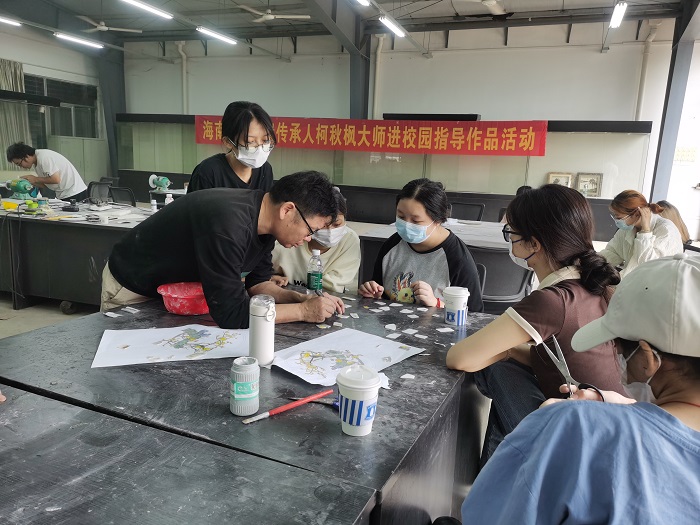 柯秋枫老师带领同学们进行作品设计与制作(旅游学院供图)