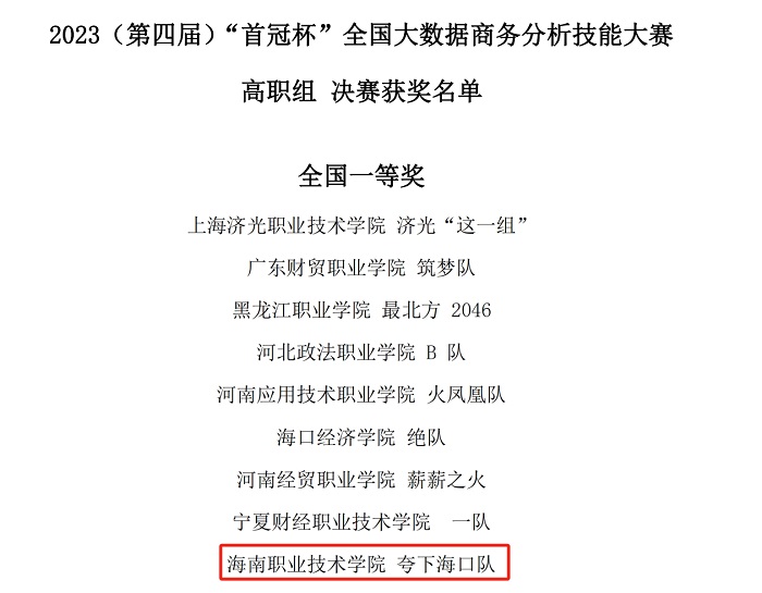 我校学子喜获2023年“首冠杯”大数据商务分析技能大赛(高职组)全国一等奖