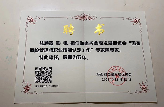 这项荣誉展示了我校教师在专业领域的实力,她们的加入有望为海南自贸港的金融人才队伍建设作出贡献,同时推动风险管理师职业技能人才的培养和认定工作。