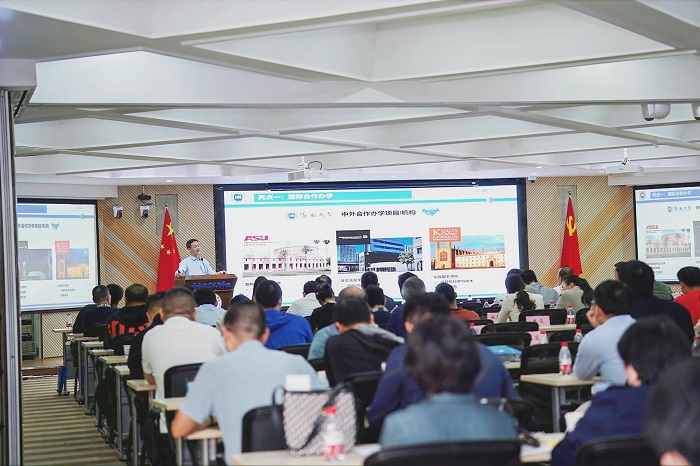 海南大学计算机科学与技术学院副院长刘华中教授做报告(海职院供图)