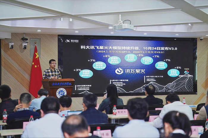 科大讯飞股份有限公司认知智能全国重点实验室智能教育中心贺胜研究员分享大模型领域话题(海职院供图)