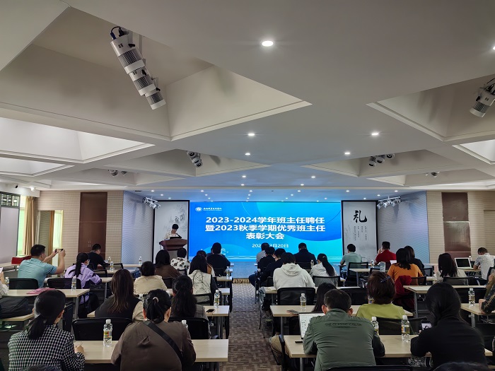 3月20日下午,我校在图书馆展演大厅召开班主任聘任暨优秀班主任表彰大会。校长助理许昌斌出席,学生工作处处长吴多清主持会议。