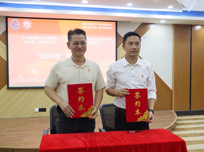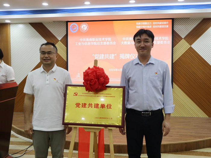 为深入学习贯彻党的二十大精神,充分发挥党建引领学校事业高质量发展作用,4月12日上午,海南职业技术学院工业与信息学院与贵州电子信息职业技术学院举行“党建引领聚合力 结对共建促发展”党建共建签约暨揭牌仪式。校党委委员、副校长康霖出席活动?;氐匙苤榧切ここ?,工业与信息学院党总支书记林尤伟、副书记蔡慧敏,贵州电子信息职业技术学院大数据与人工智能系党总支书记张光平参加活动。
