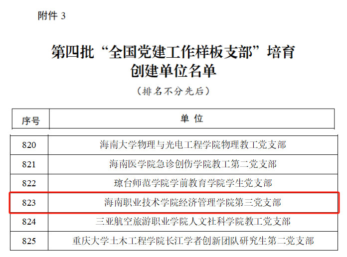 喜讯!海南职业技术学院经济管理学院第三党支部入选教育部第四批全国党建工作样板支部培育创建单位