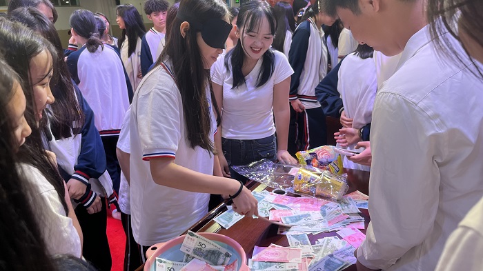 除了讲座,活动还包括了金融主题游园活动,设置了“点钞大比拼”、“挑战数钞极限”、“蒙眼铲钞小能手”和“金融反诈知识闯关”等精彩环节。同学们积极参与,热情高涨,通过亲身体验,进一步增强了金融知识和风险防范意识。