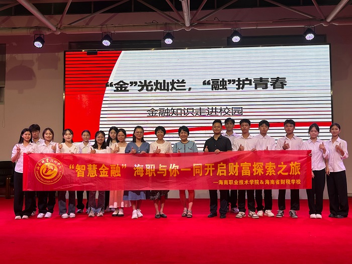 在“5•15全国投资者保护宣传日”之际,海南职业技术学院与海南省财税学校联合举办了“‘金’光灿烂‘融’护青春”金融知识走进校园活动。本次活动旨在配合2024年职教周活动,以“一技在手,一生无忧”为主题,通过讲座和游园活动,为学生们普及理财知识和金融安全意识。