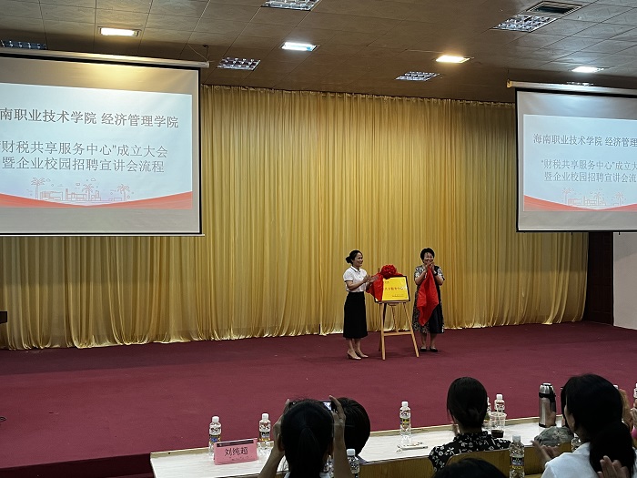活动中,李琳娜和海南昊锦财税集团创始人、总经理陈熙雯共同为“财税共享服务中心”揭牌。经济管理学院院长王桃向中心的多位企业驻校导师颁发聘书。陈熙雯在致辞中表示,该中心的成立是为了更好地整合资源,优化服务,通过校企双方的共同努力,打造一个集教学、实训、就业、科研和社会服务于一体的平台,不仅能够提升学生的专业技能,还能增强学生的实际工作能力,为学生未来的就业和发展奠定坚实的基础。