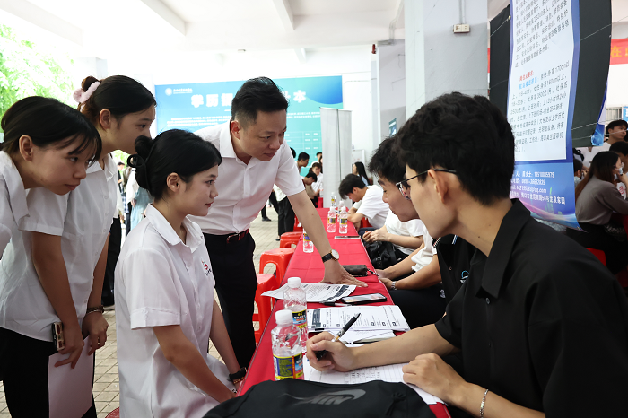 校党委书记周炳才与招聘企业交流(招生就业处供图)