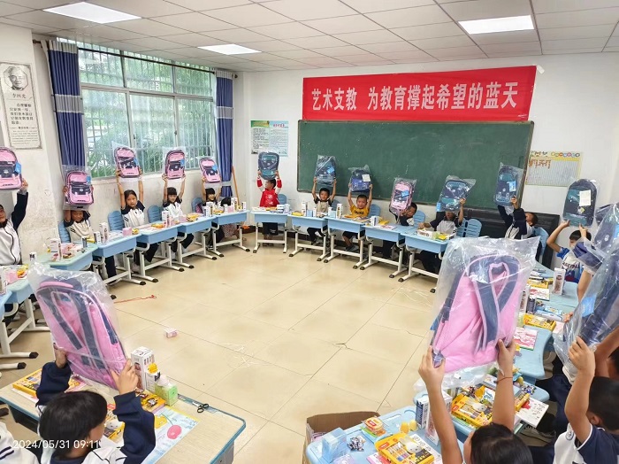 活动期间,海职院新园村乡村振兴工作队李如宝同志向新园小学生们发放书包、笔盒、绘画本等学习用品,并嘱咐孩子们努力学习、快乐成长,将来能为家乡的建设贡献自己的力量,同时祝福他们儿童节快乐。