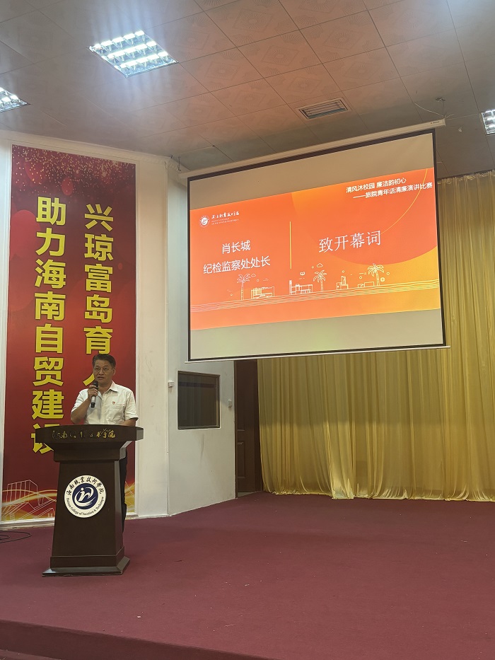 为深入贯彻省委关于推进清廉自贸港部署要求,引导师生夯实清正廉洁思想根基、厚植廉洁文化基础,我校旅游学院党总支于6月17日晚在学术报告厅举办“清风沐校园 廉韵润初心”青年话清廉主题演讲比赛。学校纪检监察处处长肖长城出席活动并致开幕词,党委宣传部部长刘炜、旅游学院党总支书记符国繁为获奖选手颁奖。