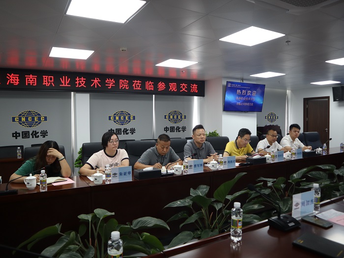 周炳才一行实地参观了中化学建设(海南)有限公司,与该司人行政总监兼工会主席庞然、副总经理邹治政、李小平等公司高层领导进行座谈。周炳才详细询问了企业目前经营情况和对人才需求,希望企业能为学校在专业设置、人才培养、职业生涯、就业指导等方面提供合作与帮助。邹治政详细介绍了公司发展情况,并表示将加强与学校合作,重点在人才培养和人才招聘方面加强合作。
