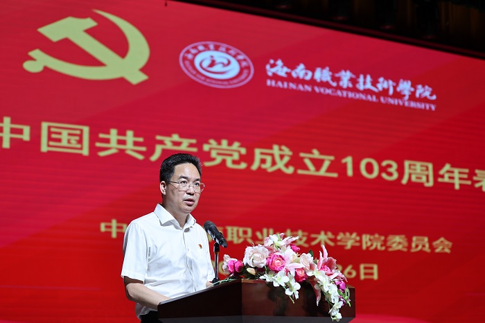 为深入学习贯彻习近平新时代中国特色社会主义思想和党的二十大精神,不断巩固拓展主题教育学习成果,扎实开展党纪学习教育,进一步激励学校广大党员和基层党组织积极发挥先进典型和示范引领作用,6月26日下午,海职院在学校大礼堂举行庆祝中国共产党成立103周年表彰大会。学校党委书记周炳才、中层及以上干部、全体师生党员和入党积极分子参加大会?;嵋橛裳5澄?、副校长符兴干主持。