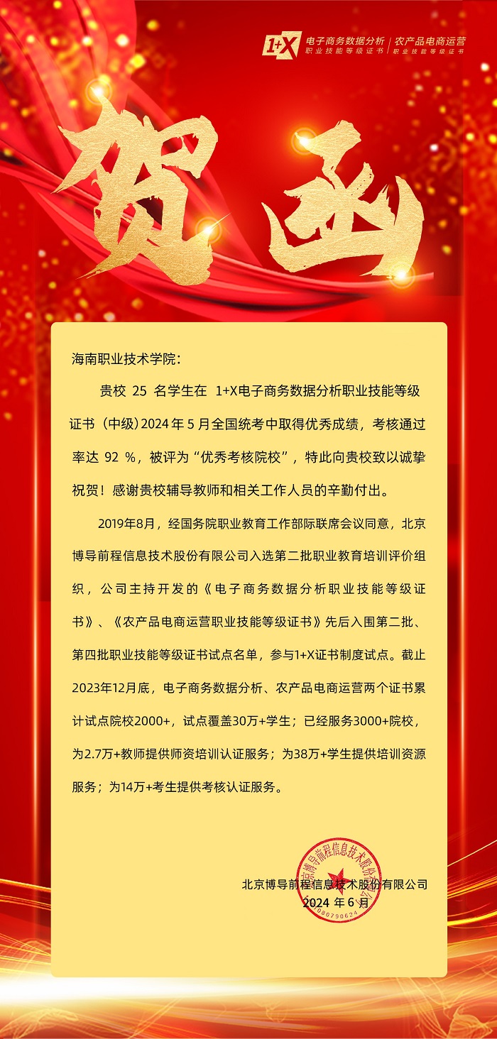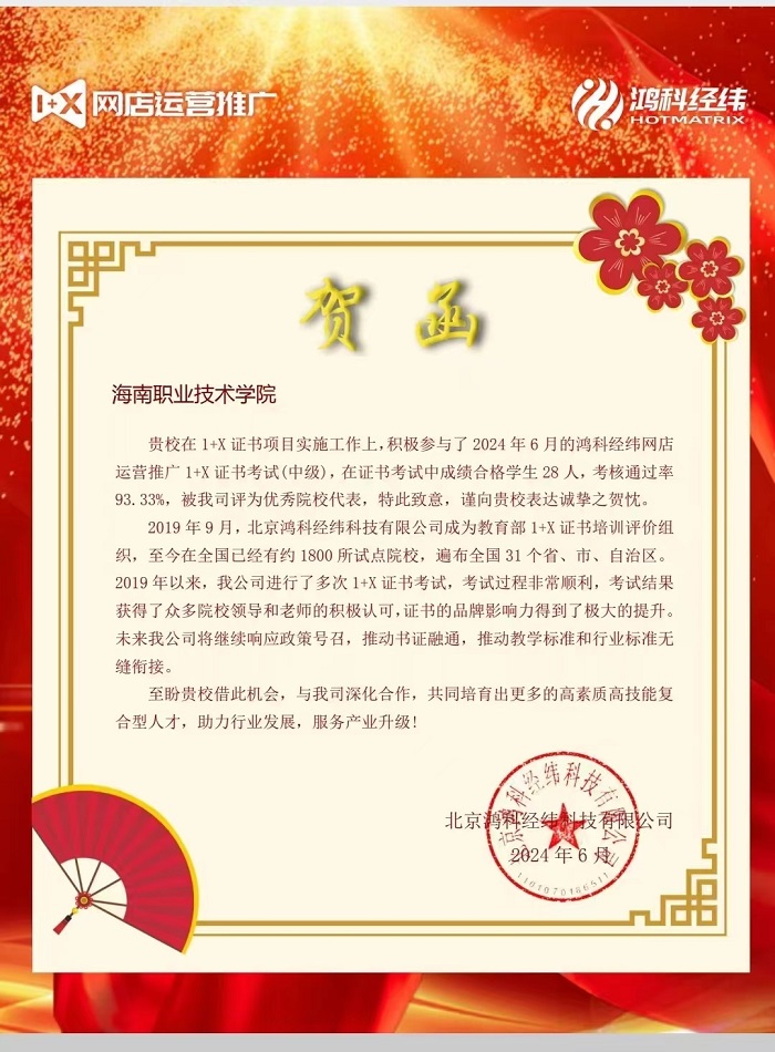 近日,我校陆续被评为2024年度1+X电子商务数据分析职业技能等级证书(中级)考核“优秀考核院校”,1+X网点运营推广职业技能等级证书(中级)考核“优秀院校代表”。