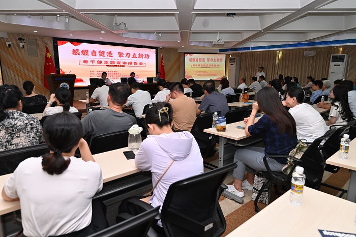 7月16日上午,工会干部参加了由海南省老干部服务管理中心老干部宣讲团成员王昌龙做的题为“银耀自贸港·聚力立新功”的宣讲活动。王昌龙同志以“从统战角度看国家治理能力的强大”为题,通过理论阐述、数据比对、案例佐证,深入浅出地讲述了我党统一战线的历史意义和重要作用,侧面反映出了祖国繁荣发展、长治久安以及海南自贸港建设蓬勃展开的发展历程。