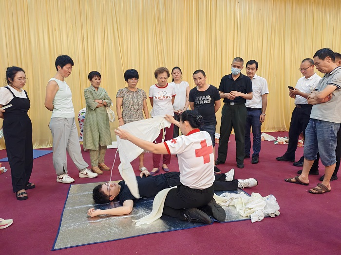 张素丽等培训老师通过理论教学和现场实操的方式,为学员们讲解和演示了心肺复苏知识和创伤救护技能;通过示范教学传授了救护教学的注意事项和备课要求,提高学员面对突发事件的应急救护能力,增强应急防范意识。