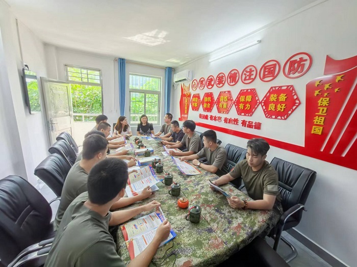 实践团队在龙桥镇人民武装部开展调研交流(工信学院供图)