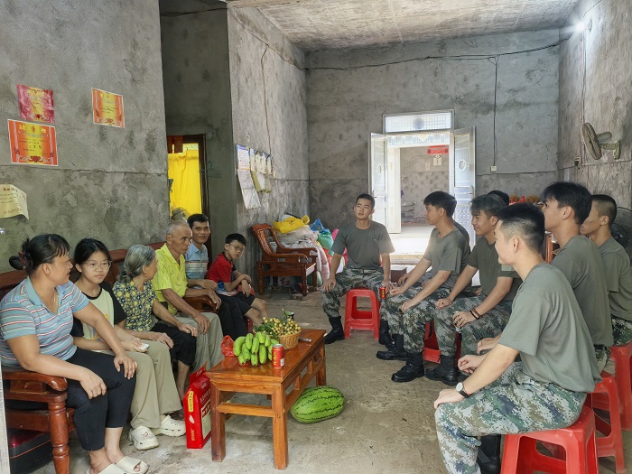 在龙塘镇昌森村等地,志愿服务队员身着迷彩服与在部队立功学生家长进行亲切交谈,聆听他们讲述学长们在部队的服役状况和英雄事迹,了解到入伍学生一家三代参军,可以说是名副其实的“军人世家”,志愿者们十分激动,深切感受到军人的精神和军人的傲骨。