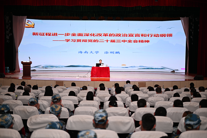 9月13日,学校党委在大礼堂举办党的二十届三中全会精神宣讲学习大会,邀请到“海南省委宣传部党的二十届三中全会精神理论宣讲团”专家、海南大学马克思主义学院涂刚鹏教授为我校师生宣讲党的二十届三中全会精神。党委书记周炳才,党委委员、副校长符兴干,副校长李琳娜,校长助理沈振国等参加大会,符兴干主持大会。