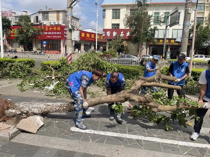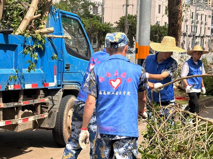2024年第11号超强台风“摩羯”于9月6日下午“袭击”海南,造成了严重灾害,9月8日学校解除风险后,积极响应省教育厅的号召,主动联系对接??谑谐俏髡蛘?,迅速组织我校在校大学生志愿者们紧急“出征”,积极投入到城西镇“摩羯”强台风灾后树枝清理和道路交通恢复等工作中,为城市“重建”贡献青春力量。